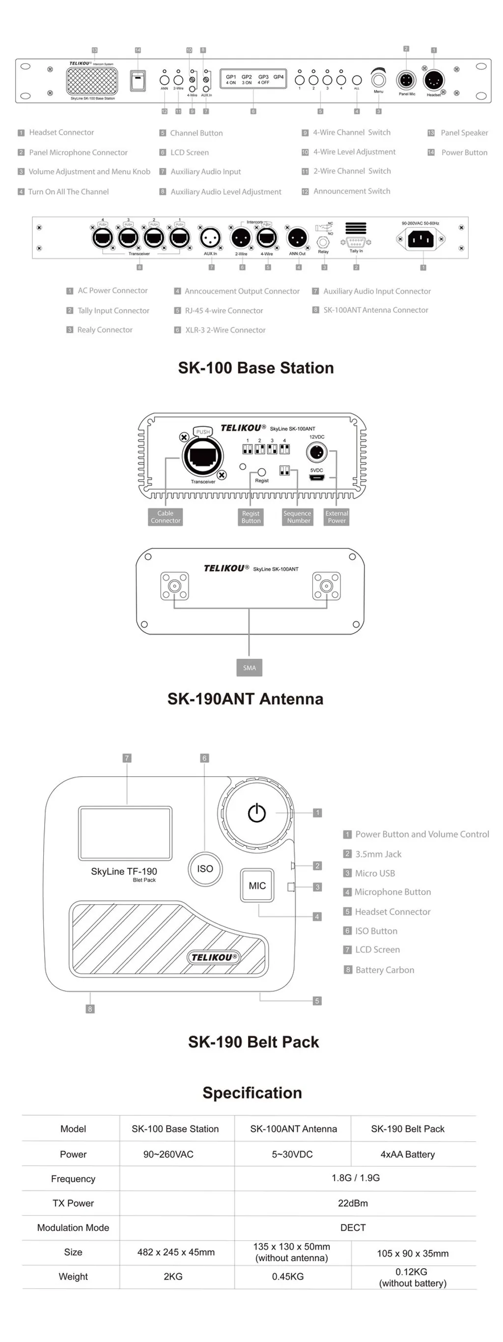 Skyline SK-100 is base station of Skyline series wireless intercom system.